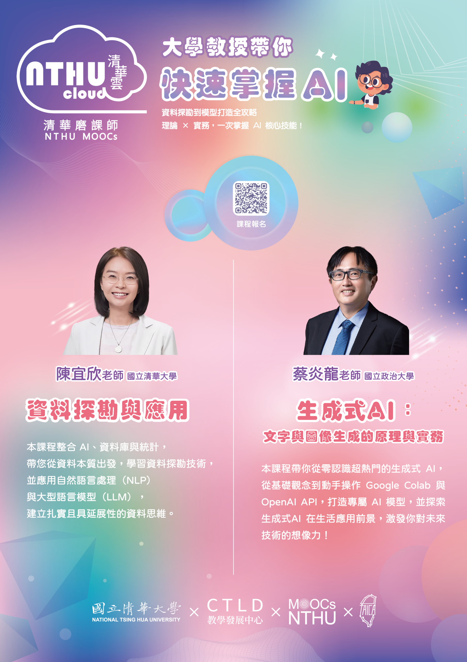 三、 2門課程均於「清華大學磨課師(NTHU MOOCs)」平台免費開放修習,無需報名費用,修課者可依自身時間彈性學習。