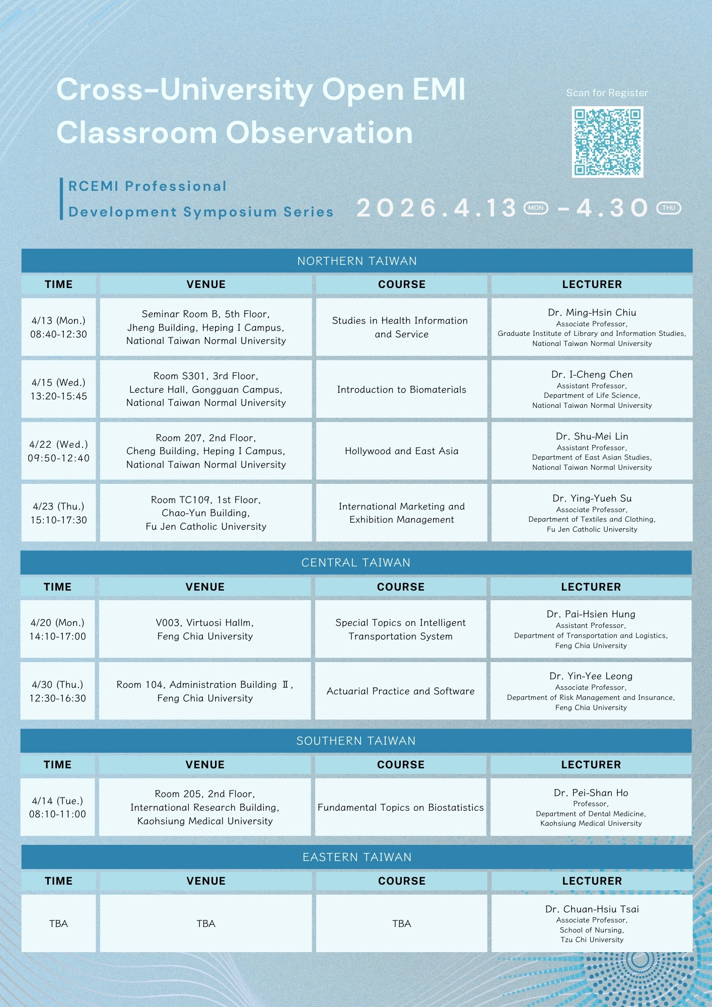 三、 旨揭活動內容詳如附件海報,各場次資訊及報名方式請參閱報名連結,並以本中心官網公告之最新資訊為準。