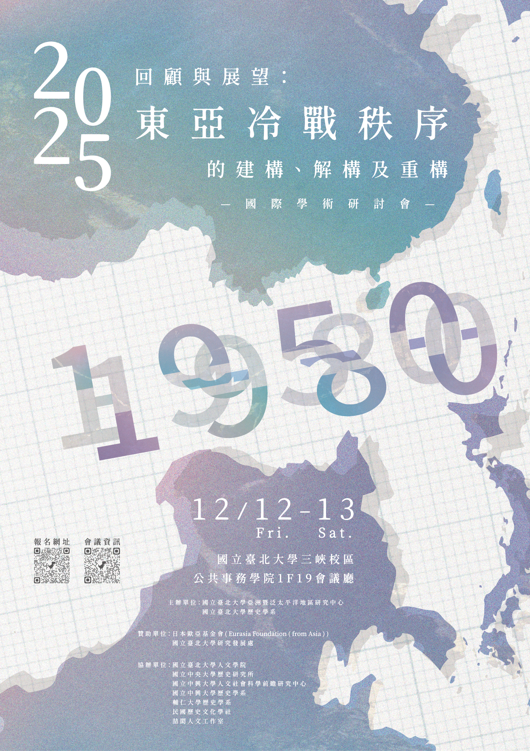 國立臺北大學亞洲暨泛太平洋地區研究中心於2025年12月12日(五)、13日(六)舉辦之「回顧與展望:東亞冷戰秩序的建構、解構及重構國際學術研討會」