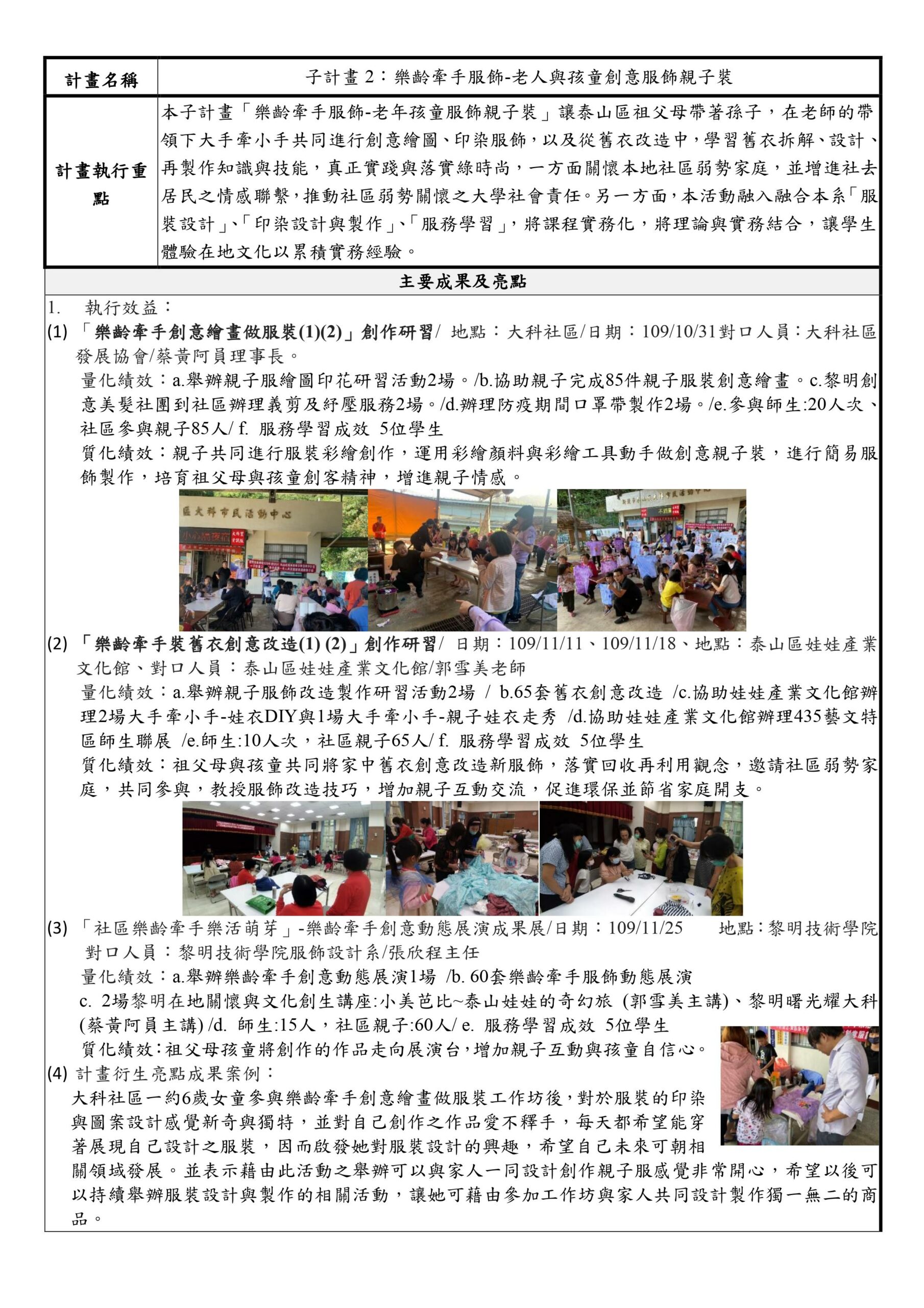 子計畫2:樂齡牽手服飾-老人與孩童創意服飾親子裝