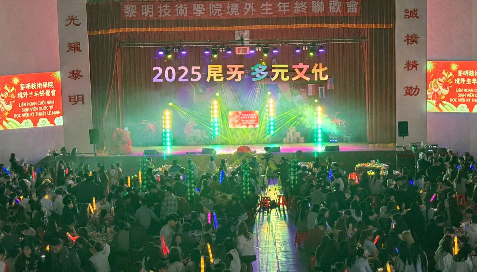 黎明技術學院舉辦了一場盛大而精彩的學生尾牙活動,與學生們一同共進餐敘。來自世界各國的國際學生齊聚一堂,其中部分學生更上台參與表演,展現各自國家的傳統文化特色,如演唱民謠或民族舞蹈等。眾多學生的熱情參與讓現場氣氛格外熱鬧,現場備有豐富多樣的美食與飲品,並安排了抽獎活動,送出多項吸引學生的大獎,其中最令人矚目的獎品價值甚至相當於一張機票,為活動增添了更多驚喜與歡樂。