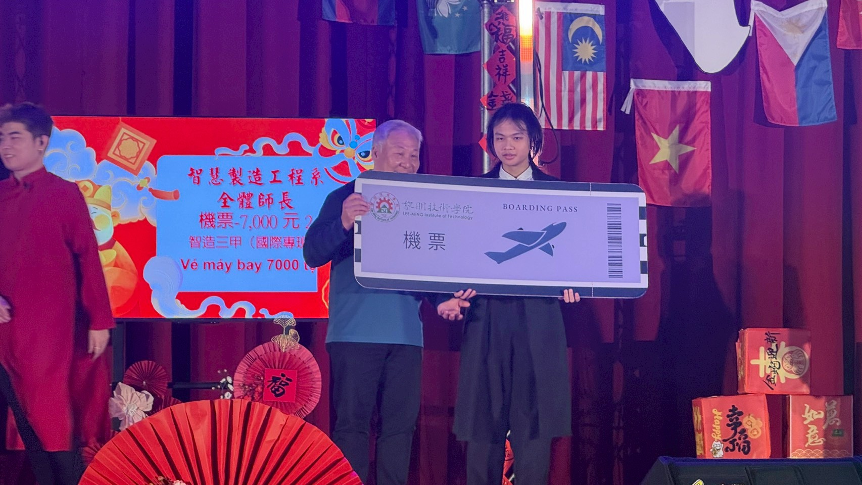 Lee-Ming Institute of Technology hosted a grand and engaging year-end banquet for students, sharing a delightful to enjoy dining experience together. International students from various countries gathered at the event, and some took to the stage to perform, showcasing the unique traditional cultures of their home countries through folk songs, traditional dances, and other cultural performances. With enthusiastic participation from many students, the atmosphere was especially vibrant and festive. A wide variety of foods and beverages were provided, along with a lucky draw event featuring many attractive prizes for students. The most remarkable prize was even valued at the equivalent of an flight ticket, adding extra excitement, surprise, and happiness to the overall event to the overall event.