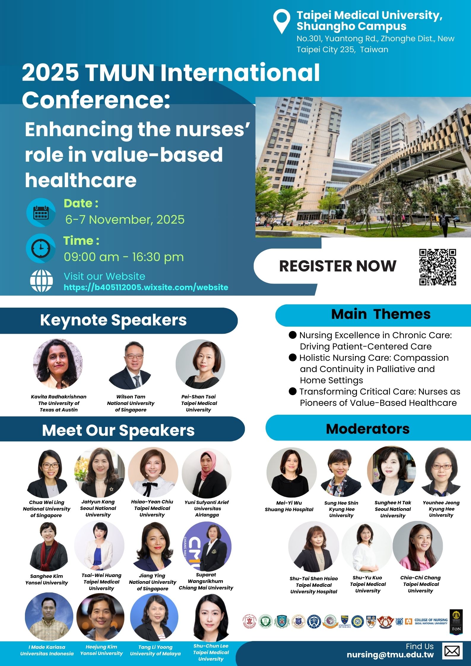 一、本校護理學院訂於114年11月06日至11月07日舉辦「2025 臺北醫學大學護理學院國際研討會價值導向醫療照護:護理的角色」。