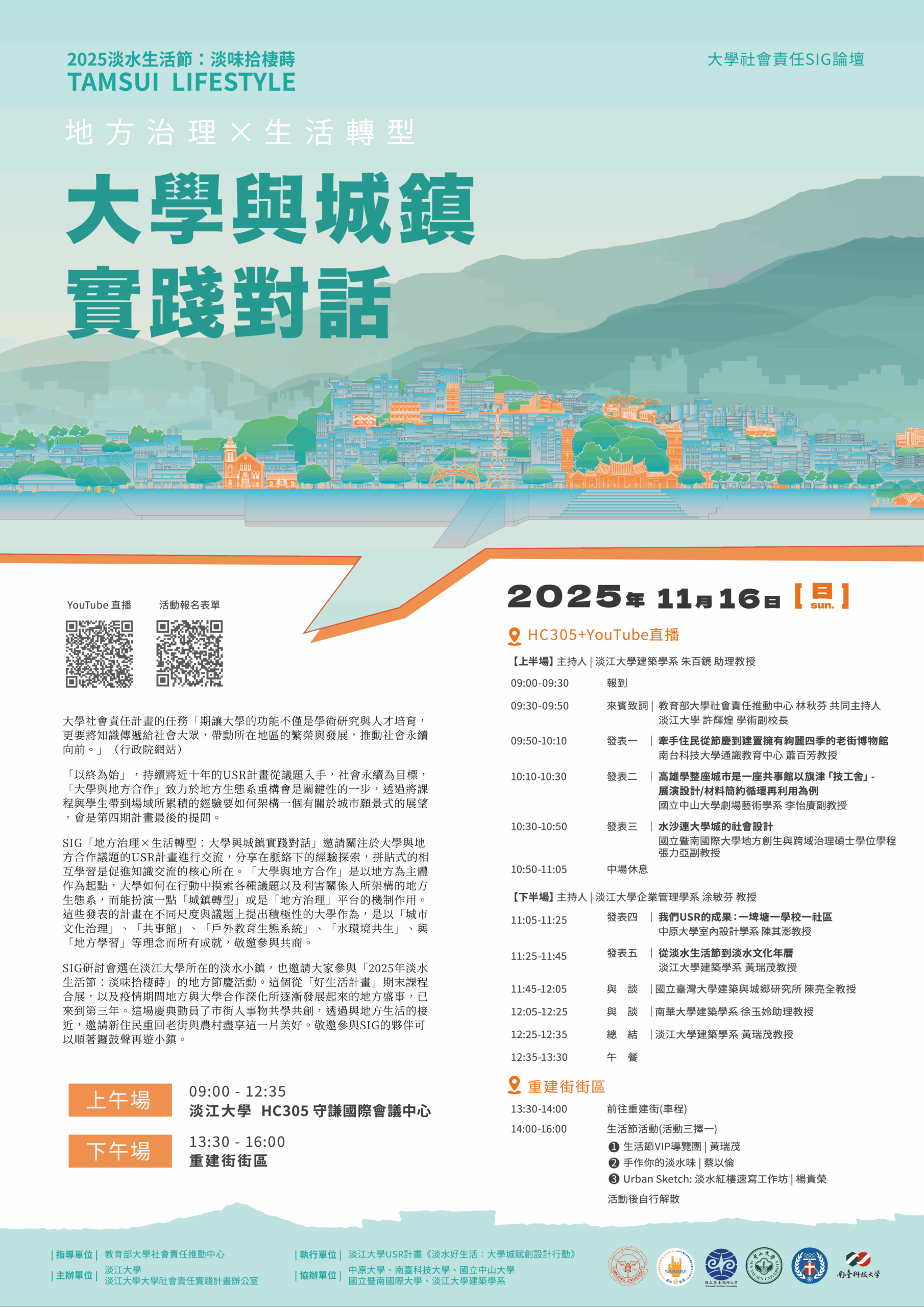 淡江大學訂於114年11月16日舉辦「2025淡水生活節SIG|地方治理×生活轉型:大學與城鎮實踐對話」論壇