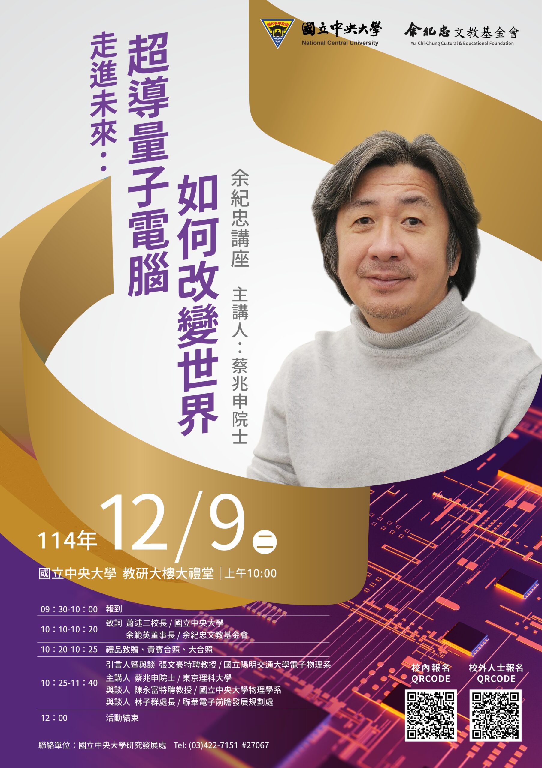 本校謹訂於114年12月9日(二)辦理「114年余紀忠講座-走進未來:超導量子電腦如何改變世界」,敬邀貴校教職員生踴躍參加,請查照並惠予公告。