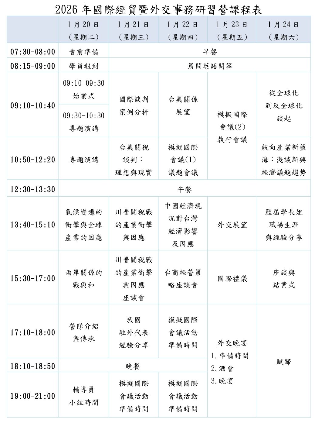 為未來投入國際經貿及外交相關領域預作學習準備。