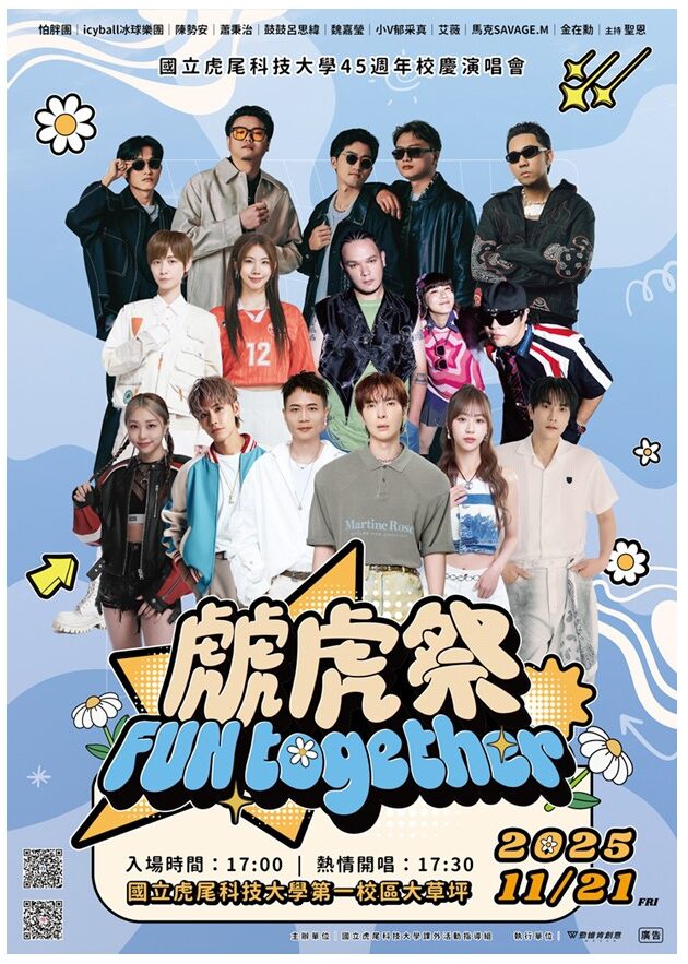 114年11月21日(五)及11月22日(六)分別於第一校區大草坪舉辦校慶演唱會、校慶園遊會活動。