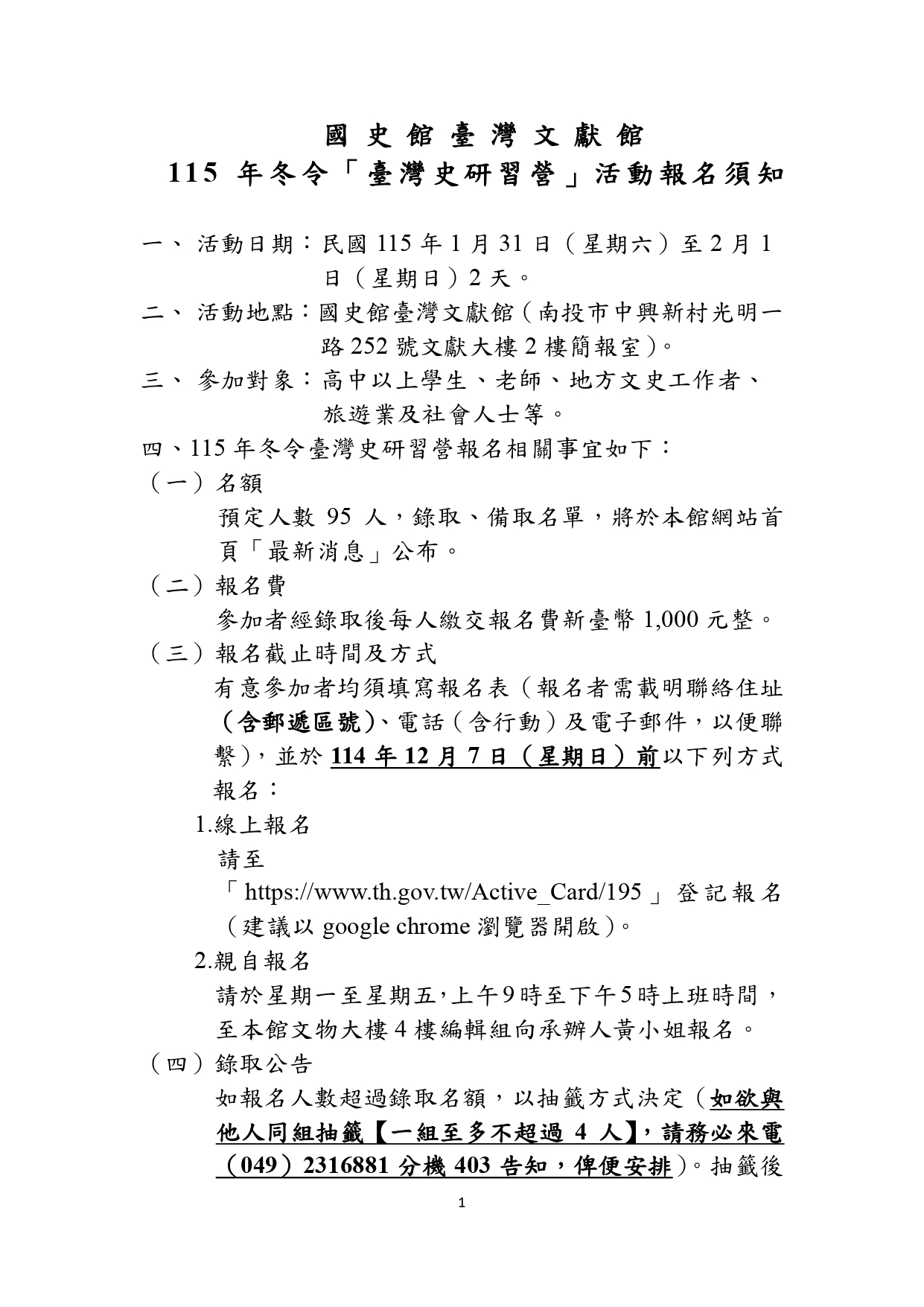 預定人數95人,錄取、備取名單,將於本館網站首頁「最新消息」公布。