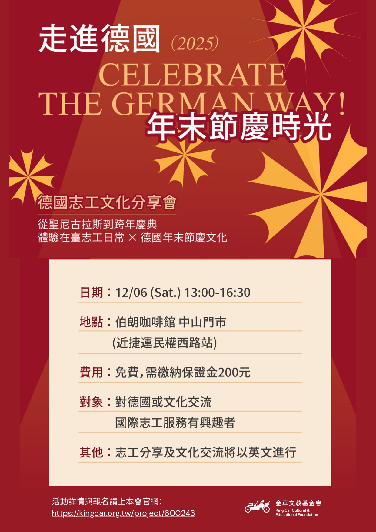 轉知【2025德國志工文化交流分享會:走進德國年末節慶時光 Celebrate the German Way!】