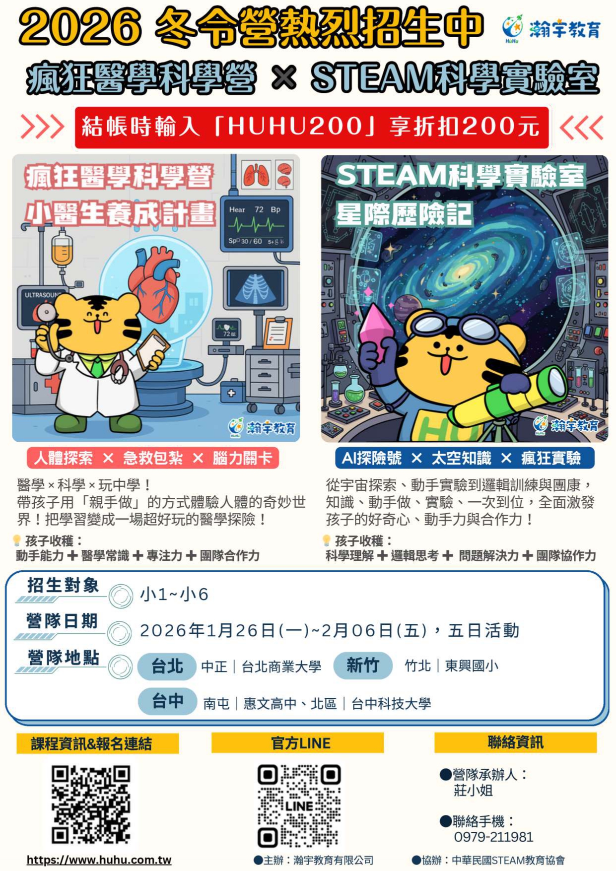 二、 2026『瀚宇教育冬令營』,於2026/01/26開始舉辦。