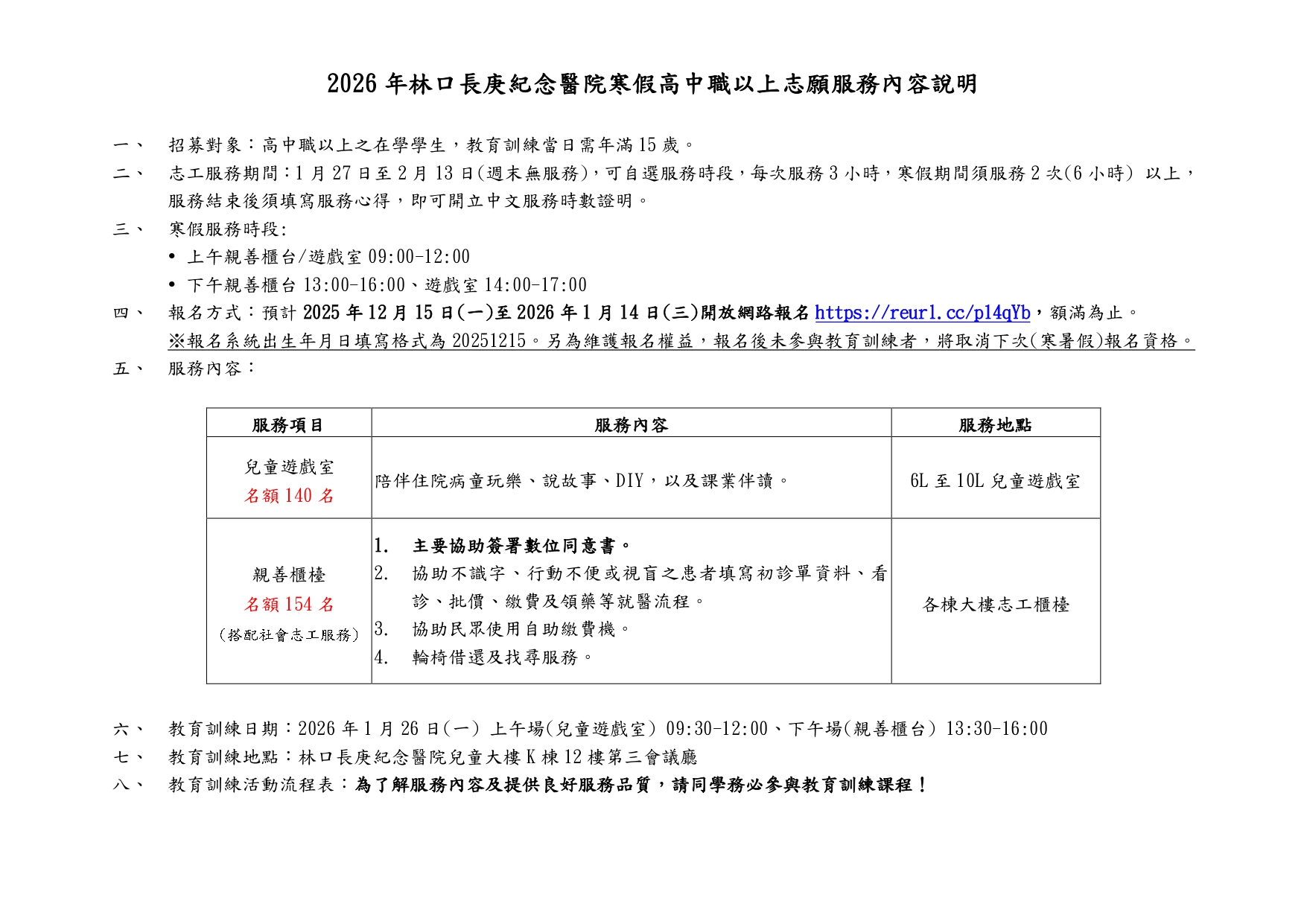 本院將辦理寒假志願服務學習,敬邀貴校學生參與。
