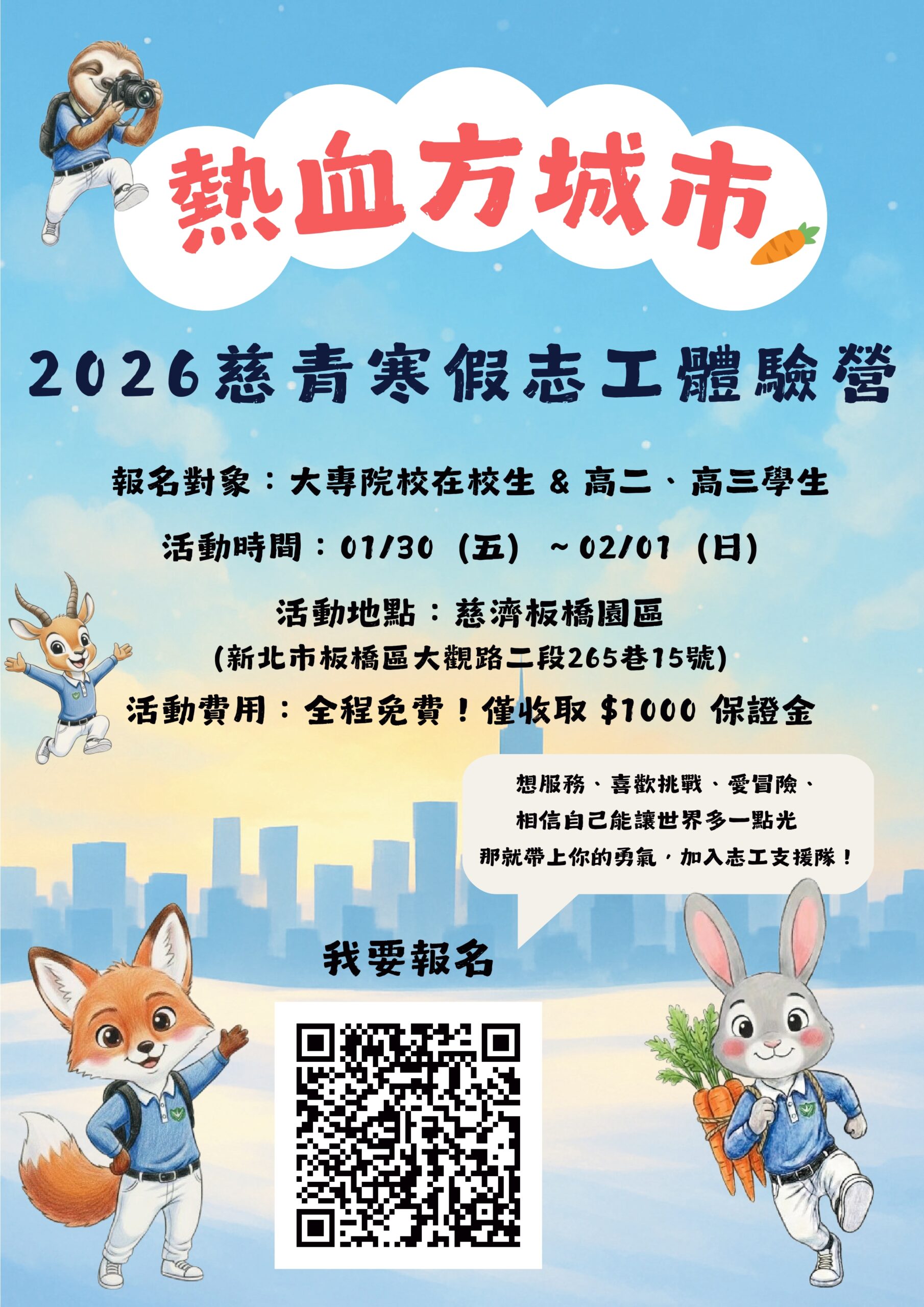 一、 為鼓勵在學青年投身公益並關注社會議題,以「走進人群、以行為語」為核心,邀請大專青年在服務中看見生命的價值。透過實際付出、團隊合作與人文關懷,重新找回與人相處的真實溫度,在陪伴與付出中發現幸福的源頭,並把這份善與愛延續到生活中,成為社會溫柔而有力的正能量。