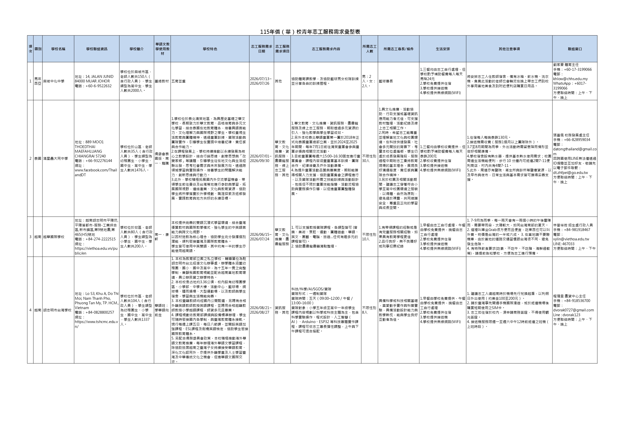 五、 檢附115年度僑(華)校青年志工服務需求彙整表與申請及核銷注意事項各一份。