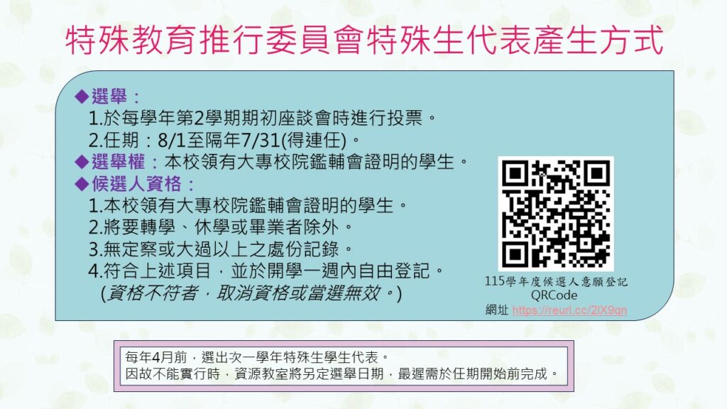 [公告]115學年度特殊教育推行委員會特殊生代表選舉