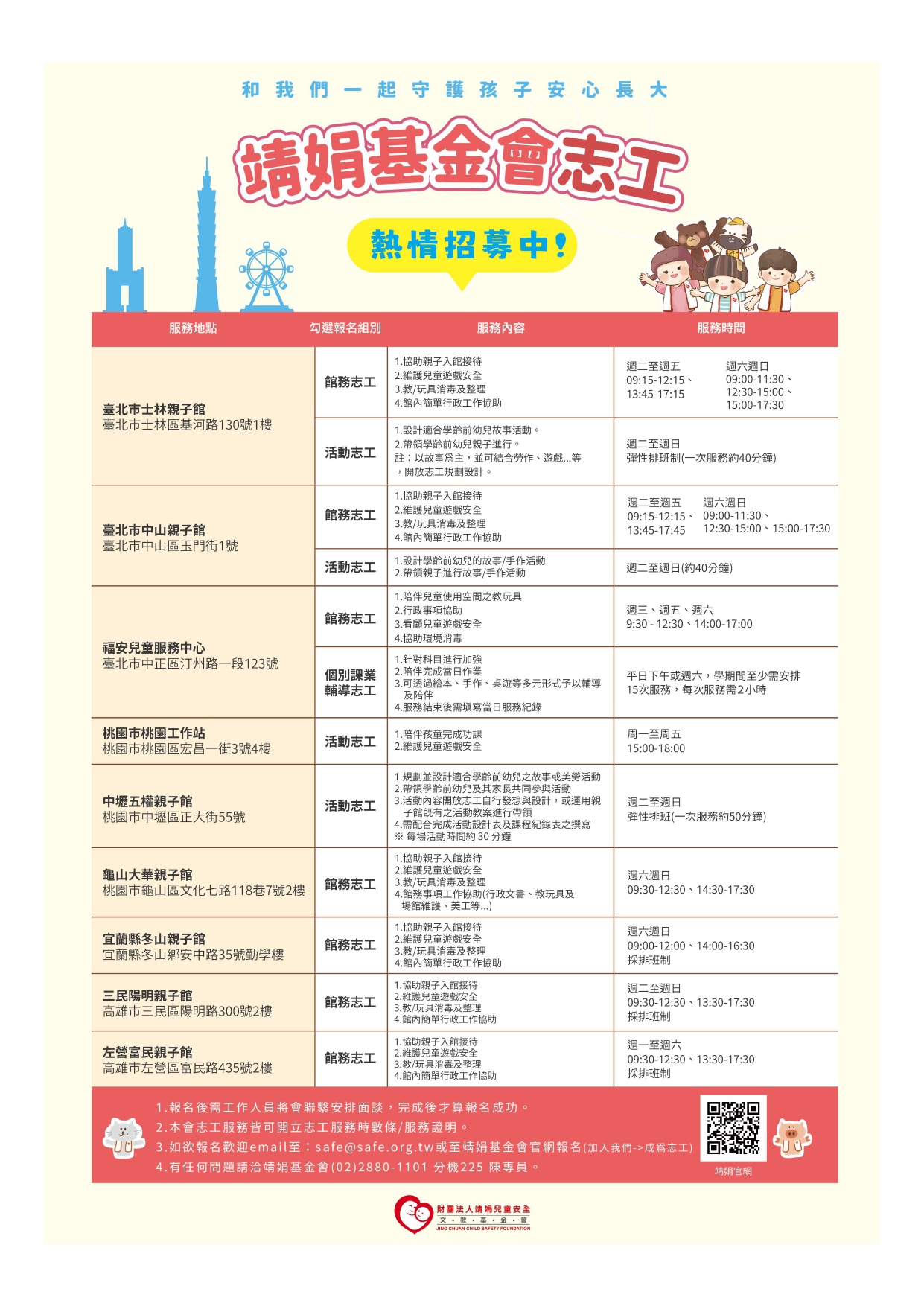 轉知《財團法人靖娟兒童安全文教基金會-115年上半年志工招募》