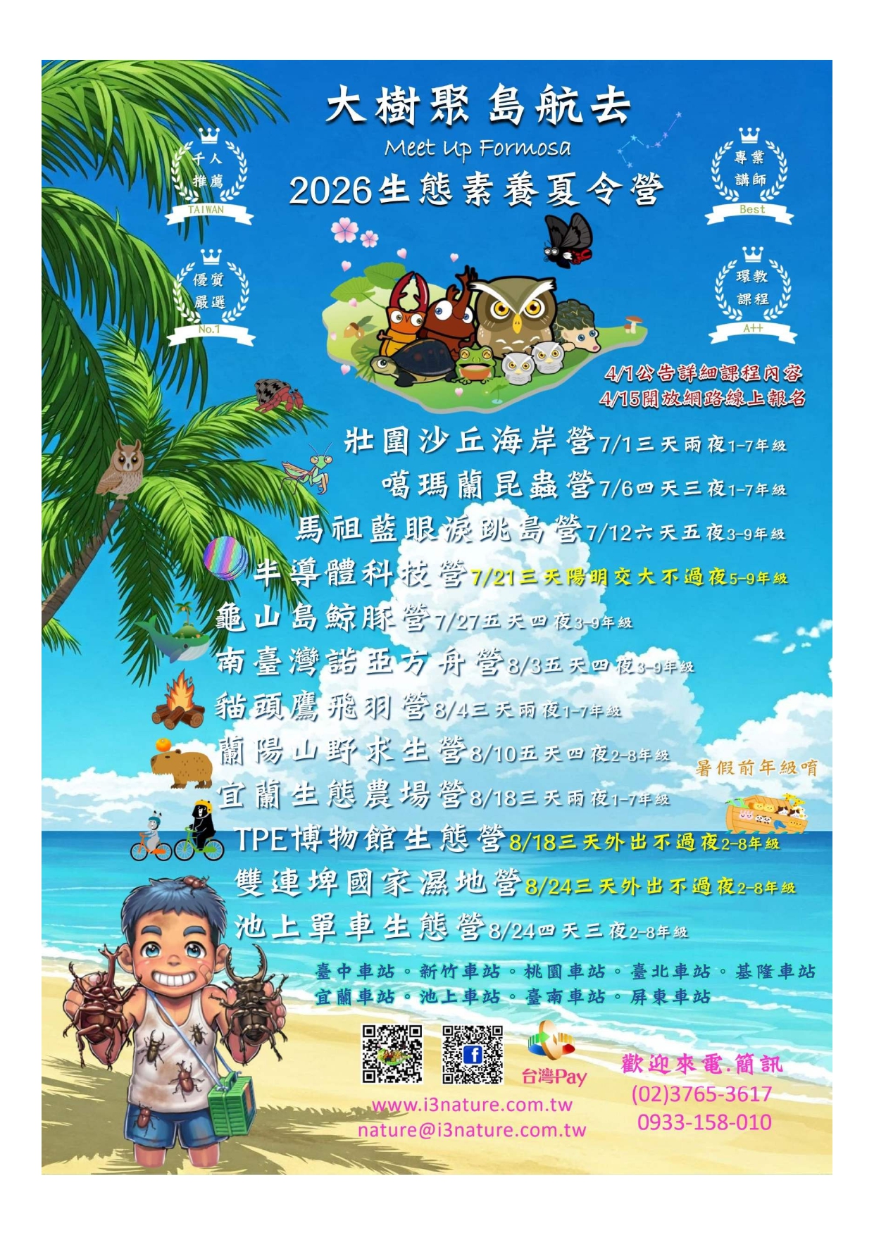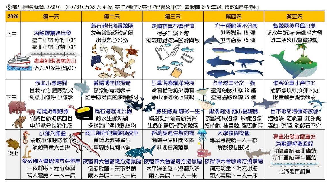 【大樹聚 島航去】2026生態素養夏令營日期7/1~8/27,招生涵蓋1-9年級學員