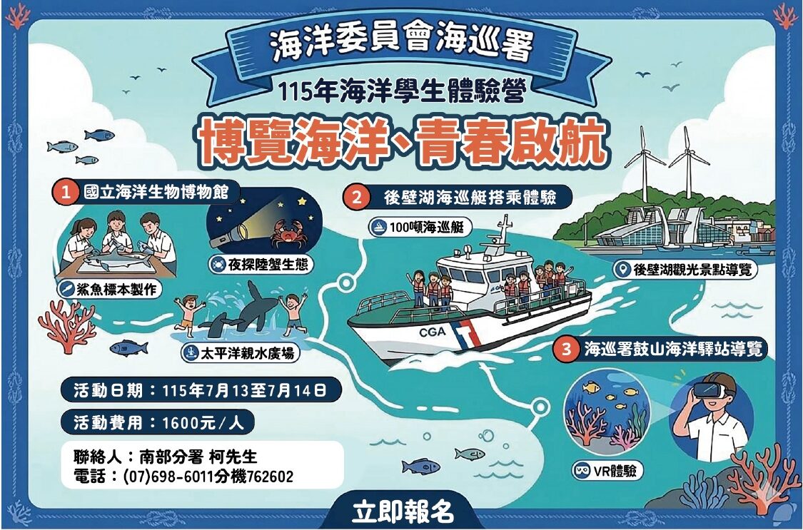 活動將於5月1日至5月31日於海巡署全球資訊網(http://www.cga.gov.tw)開放報名
